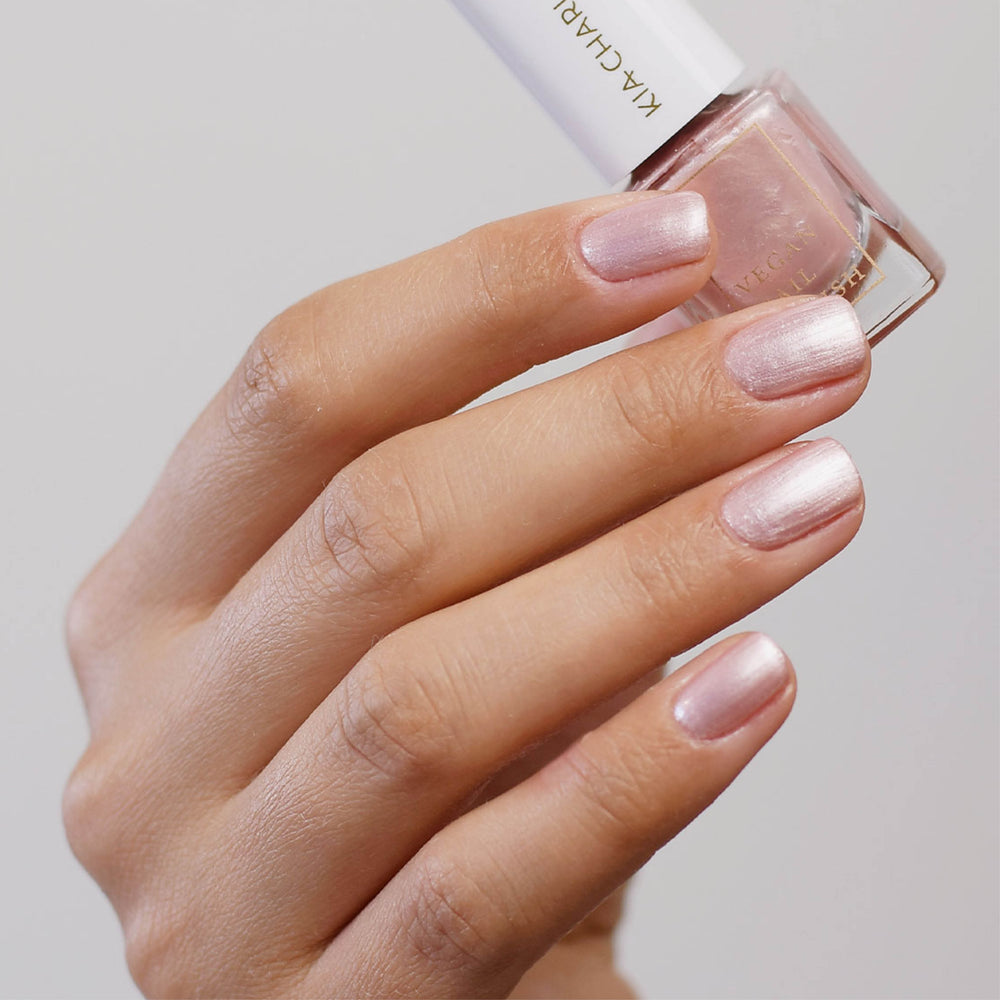 Dein veganer Nagellack, Receive, ist eine atemberaubende metallic perlenpinke Nagellackfarbe. Sie macht Deine Nägel zu einem ganz besonderen Blickfang!